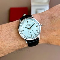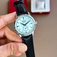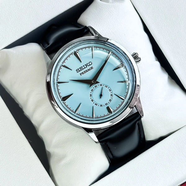 The Seiko Presage from the 7AA Collection epitomizes the brand's legacy of innovation and precision in watchmaking. Boasting a 42mm dial size, it commands attention with its striking sky-blue dial that exudes sophistication and style.